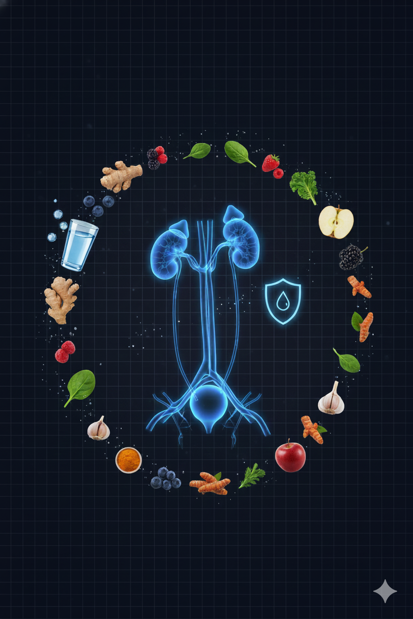 You can create your own renal-friendly nutrition plan or, with your nutritionist’s support, design a tailored strategy focused on reducing renal load and improving detox pathways. Your plan emphasizes hydration timing, balanced protein distribution, antioxidant-rich foods, and low-purine, ideal potassium and phosphorus intake, anti-inflammatory options to ease kidney stress and maintain metabolic balance.